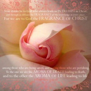 But thanks be to God, who in Christ always leads us in triumphal procession, and through us spreads the fragrance of the knowledge of him everywhere. 2 Corinthians 2:14