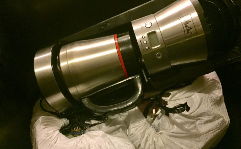 In the months since the garage sale, quite a few more items have made their way out of this house. More clothes, and even as I type I’m recalling a broken coffeemaker in the basement next to some sushi plates and some old games that we no longer use. The coffeemaker was broken but I thought someday I might fix it. Nope, I will never fix this thing so it is going into the trash right now. As a result, there’s an empty space.