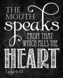 Lord – help me to treasure your promises and gift of salvation above all else. Let me be concerned more about my own heart than about the actions of people around me. Help me to live in this world as someone who loves you so much that my mouth speaks love and my actions show it.
