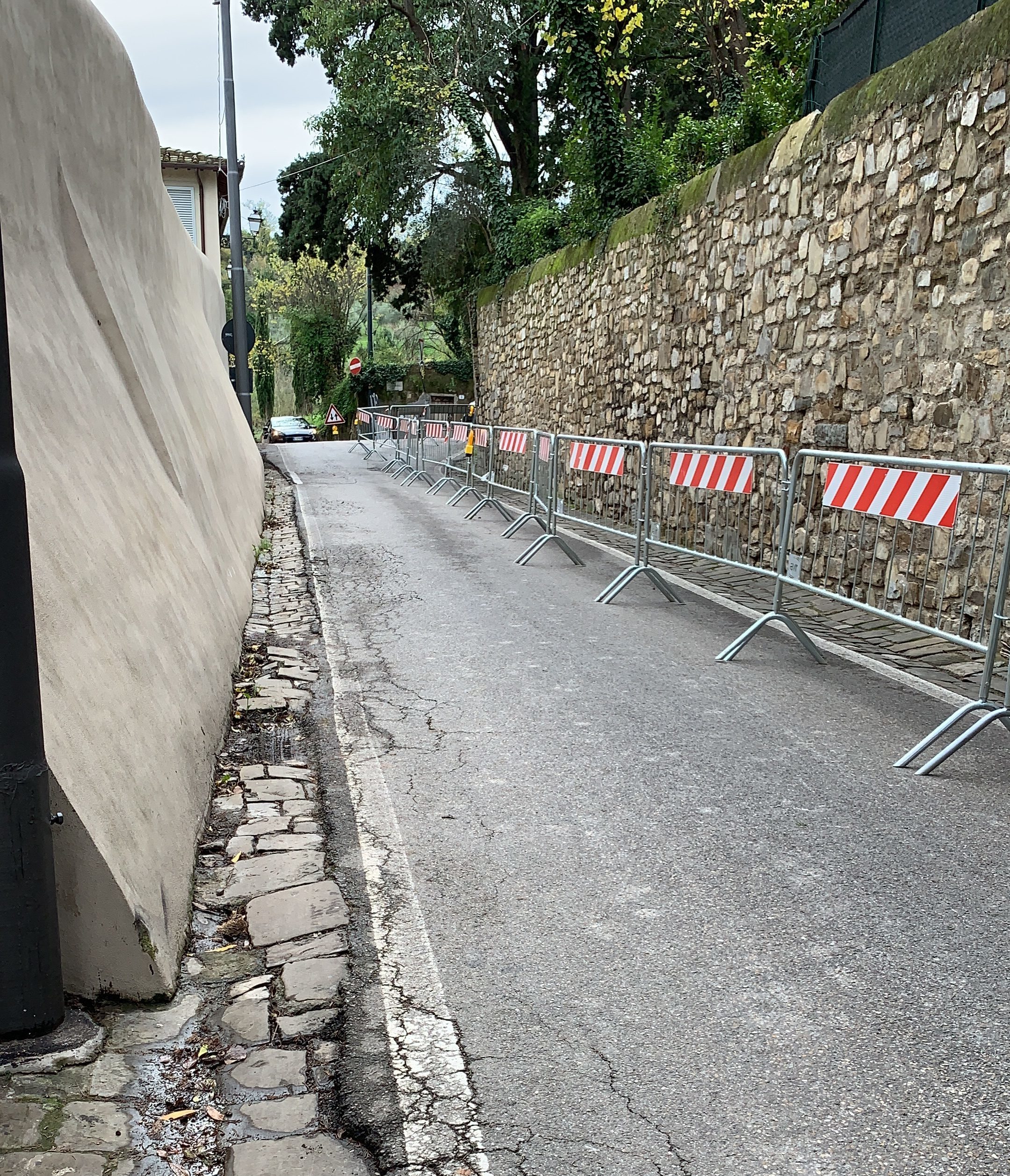 While the street is narrow and just outside the city, it is fairly busy especially during the morning commute timeframe. Motorcycles, cars, buses, bicycles and walkers all wanting to reach their destinations. Closure of this road would cause a serious disruption, especially since it is a one-way street and there are other nearby road closures.