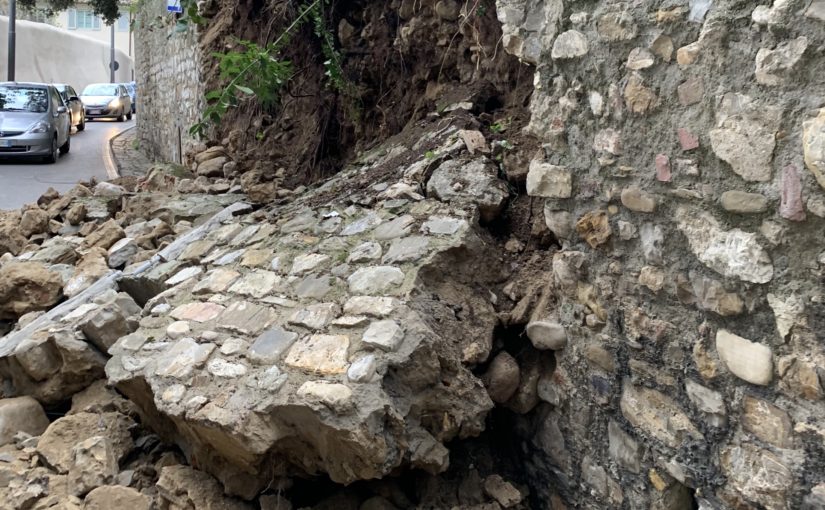 Recently a portion of the massive wall that lines our street collapsed. It was sudden and unexpected and it caused some panic and disruption as well as a safety risk to passers by. Fortunately no one was injured.