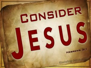 The word consider (katanoeo in hebrew) means literally to put the mind down on something and so to observe or consider carefully and attentively. The idea is to think about something very carefully consider closely which denotes the action of one’s mind comprehending certain facts about a thing so as to give one the proper and decisive thought about the thing considered. (preceptaustin.org) In Hebrews 3:1, the focus is on the action of the mind comprehending certain facts about Jesus.