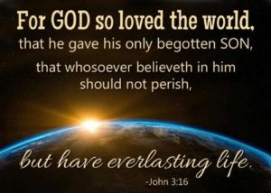 For God so loved the world that he gave his one and only Son, that whoever believes in him shall not perish but have eternal life. –John 3:16 NIV