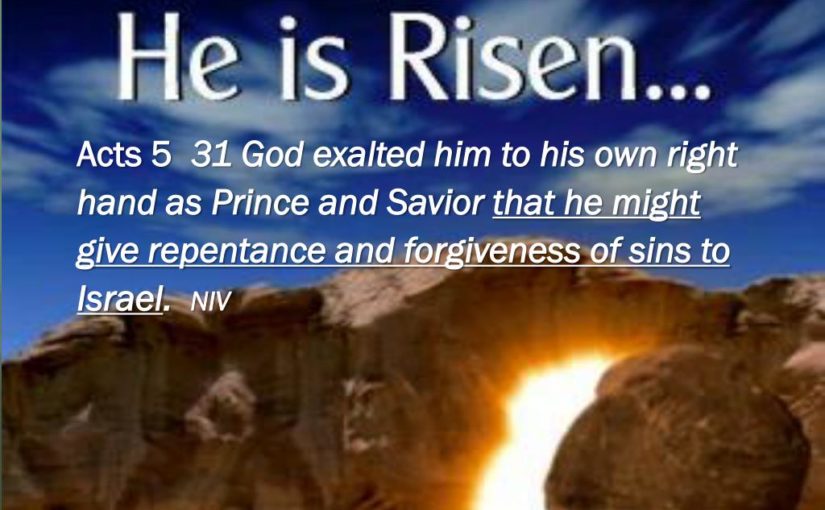 God exalted him to his own right hand as Prince and Savior that he might bring Israel to repentance and forgive their sins. (Acts 5:31)