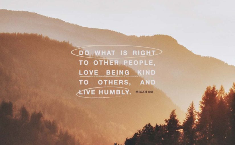 The verse that is on my heart today is “Do what is right to other people, love being kind to others, and live humbly.” Micah 6:8
