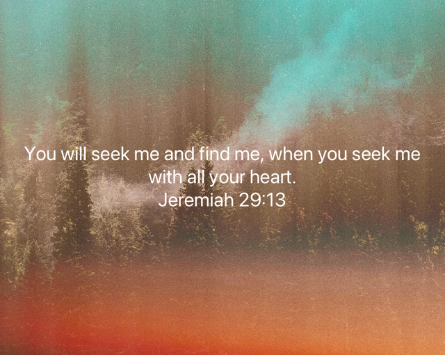 “You will seek me and find me when you seek me with all your heart.” (Jeremiah 29:13)