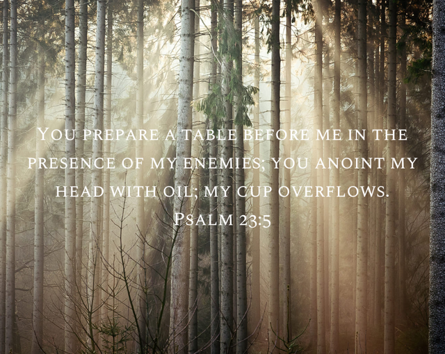 May the Lord prepare a table before you in the presence of your enemies. May he anoint your head with oil. May your cup overflow. Amen.
