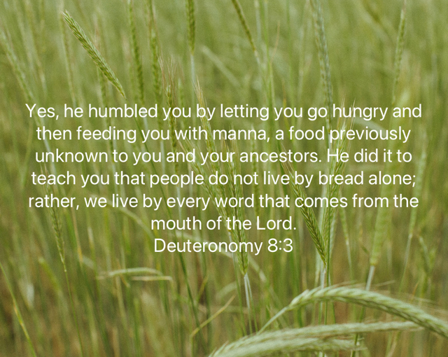 But he answered, “It is written, “‘Man shall not live by bread alone but by every word that comes from the mouth of God.’” (Matthew 4:4)