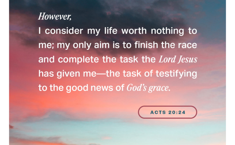 In today’s reading (Acts 20) Paul is speaking to the Ephesian Elders and what stands out is his passion for: