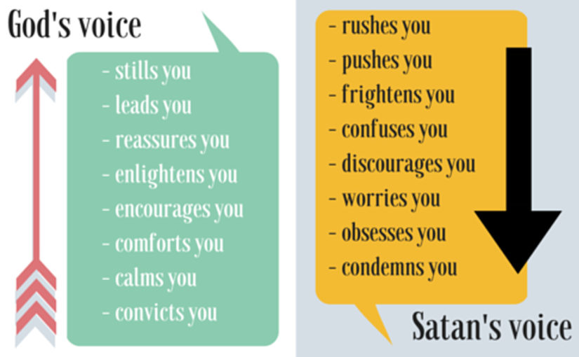 I’m reminded of this outline I came across years ago – which helped me pray and process through different thoughts. It can be HARD to distinguish between thoughts from the Holy Spirit, my own thoughts, or even thoughts from the enemy. I love this tool to help recognize the voice of the Holy Spirit: