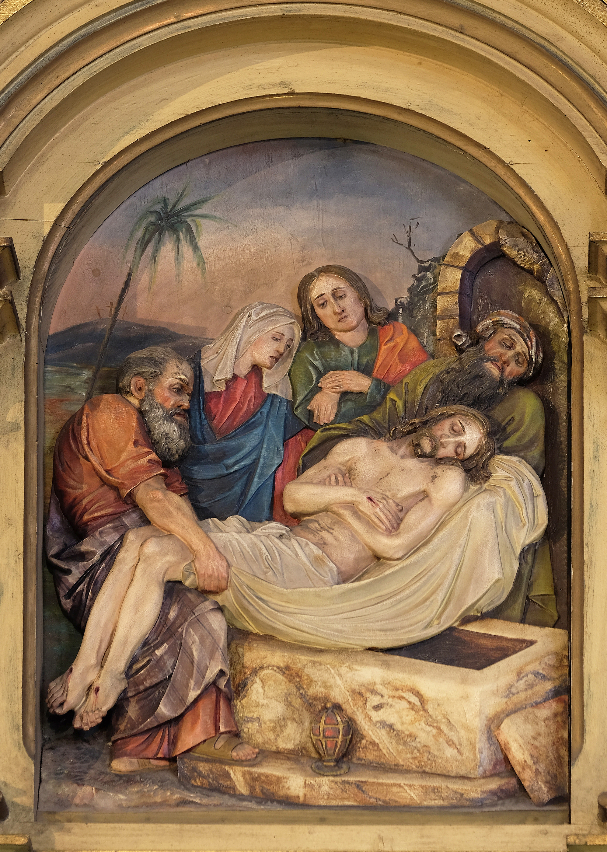 Previous ImageNext Image ZAGREB, CROATIA – MARCH 11: 14th Stations of the Cross, Jesus is ZAGREB, CROATIA – MARCH 11: 14th Stations of the Cross, Jesus is laid in the tomb and covered in incense, Saint John the Baptist church in Zagreb, Croatia, on March 11, 2017.
